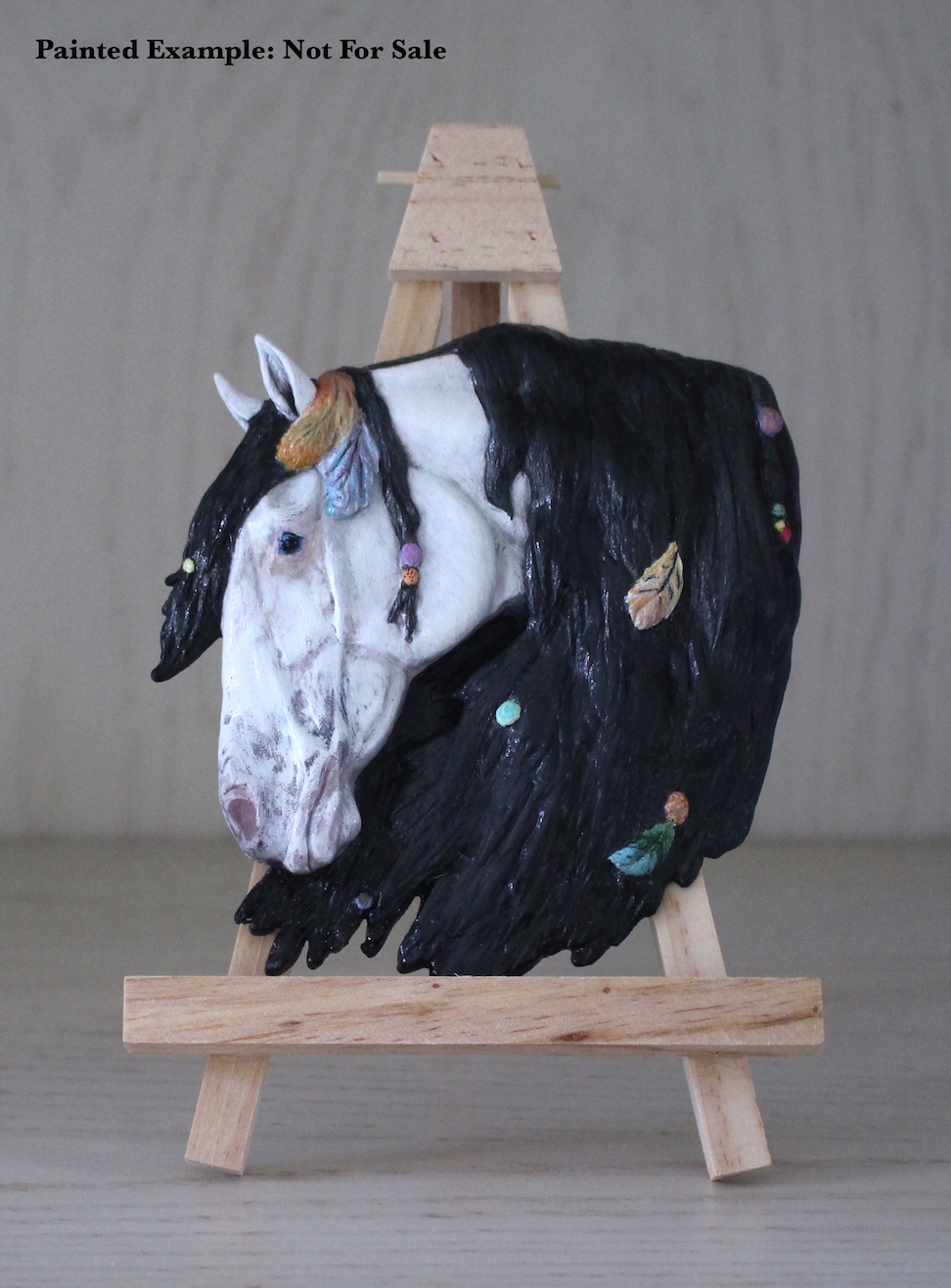 Dream Catcher is a Native American horse with beads and feathers in her mane.