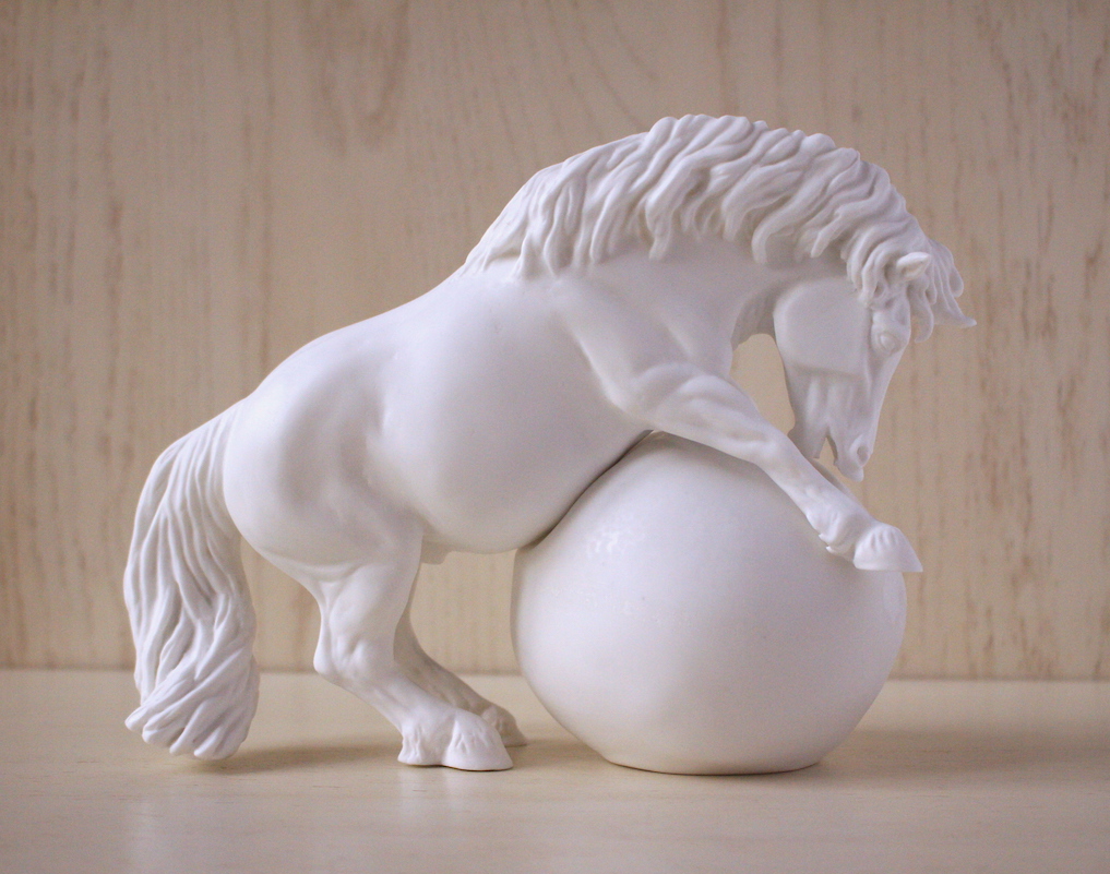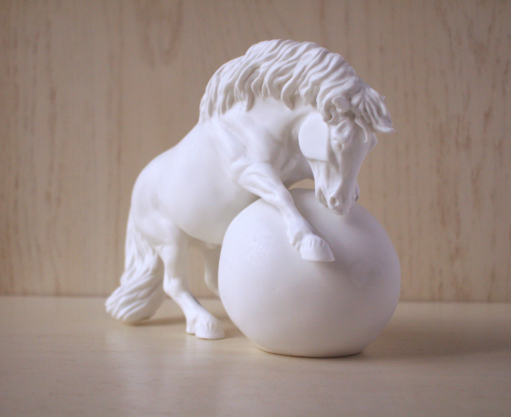 This is a fun and unique model as the pony and the ball are cast separately. The ball serves as the support for the pony. This creates fun painting opportunity as well as makes painting easier.