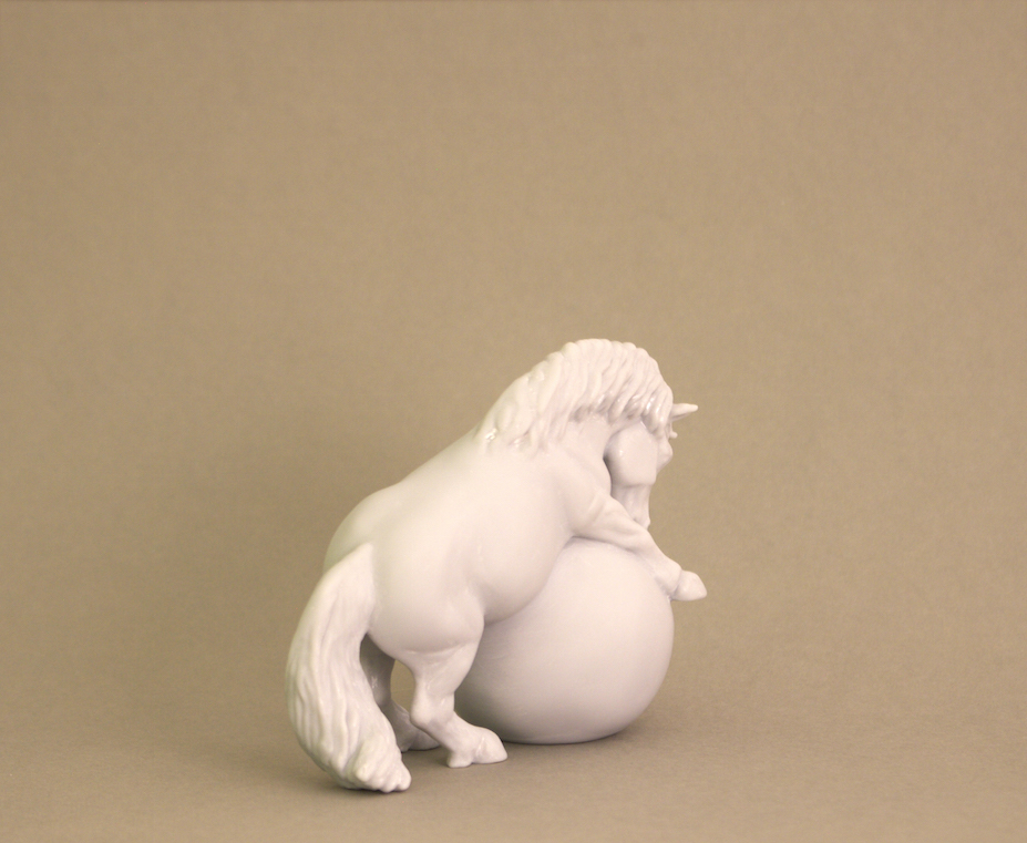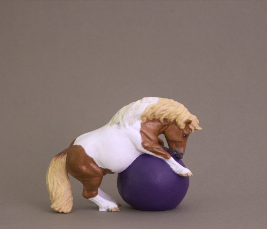 The pony and the ball are 3D-printed in Europe with high-quality resin as one piece.